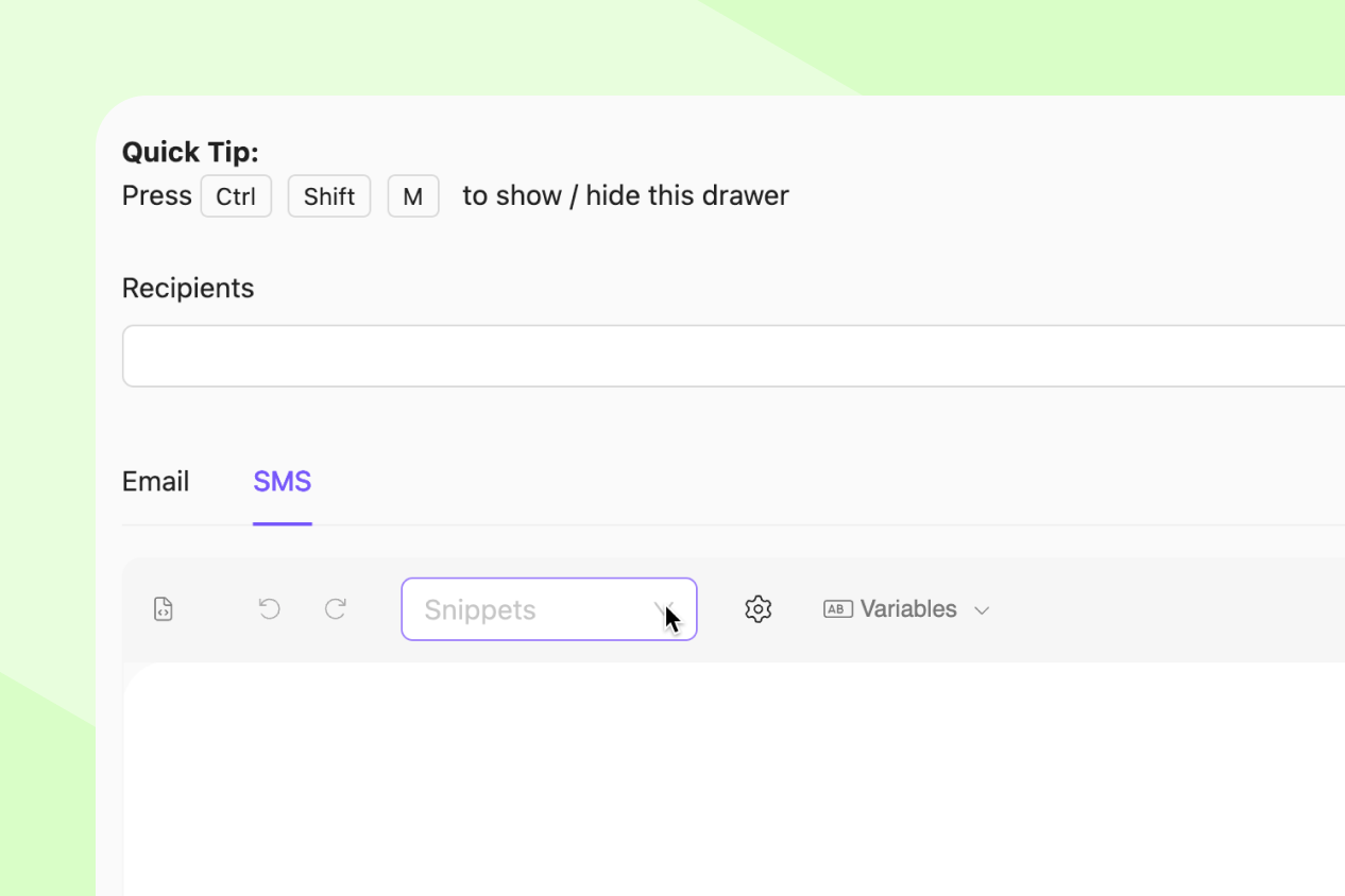 Save time and ensure consistency with pre-saved SMS snippets and templates, streamlining your communication process and reducing typing time.✓